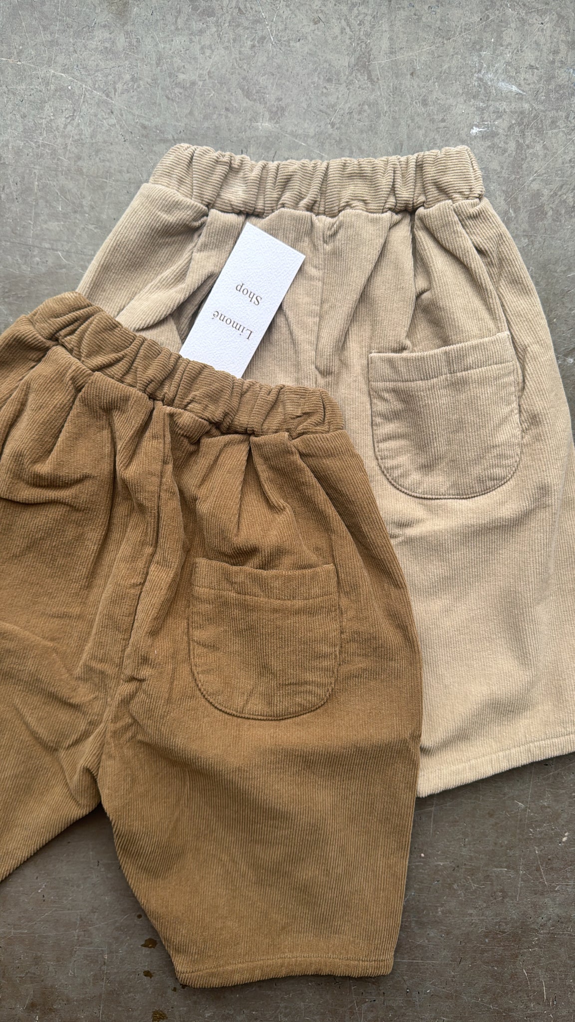 Mini corduroy trousers in barren style. They are extra warm for cooler days